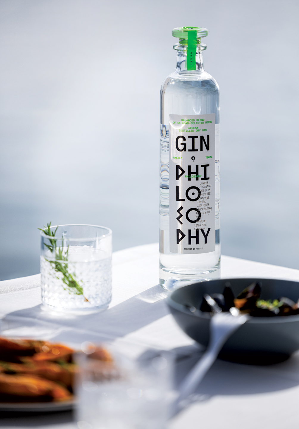 The only company in the Aegean that produces London* Dry GIN from a 100% distillation, EVA distillery, chose us to design the packaging of the gin ‘Philosophy’. A balanced blend of 16 hand-selected herbs, fruits, flowers, spices, seeds, and roots, some native and some exotic.